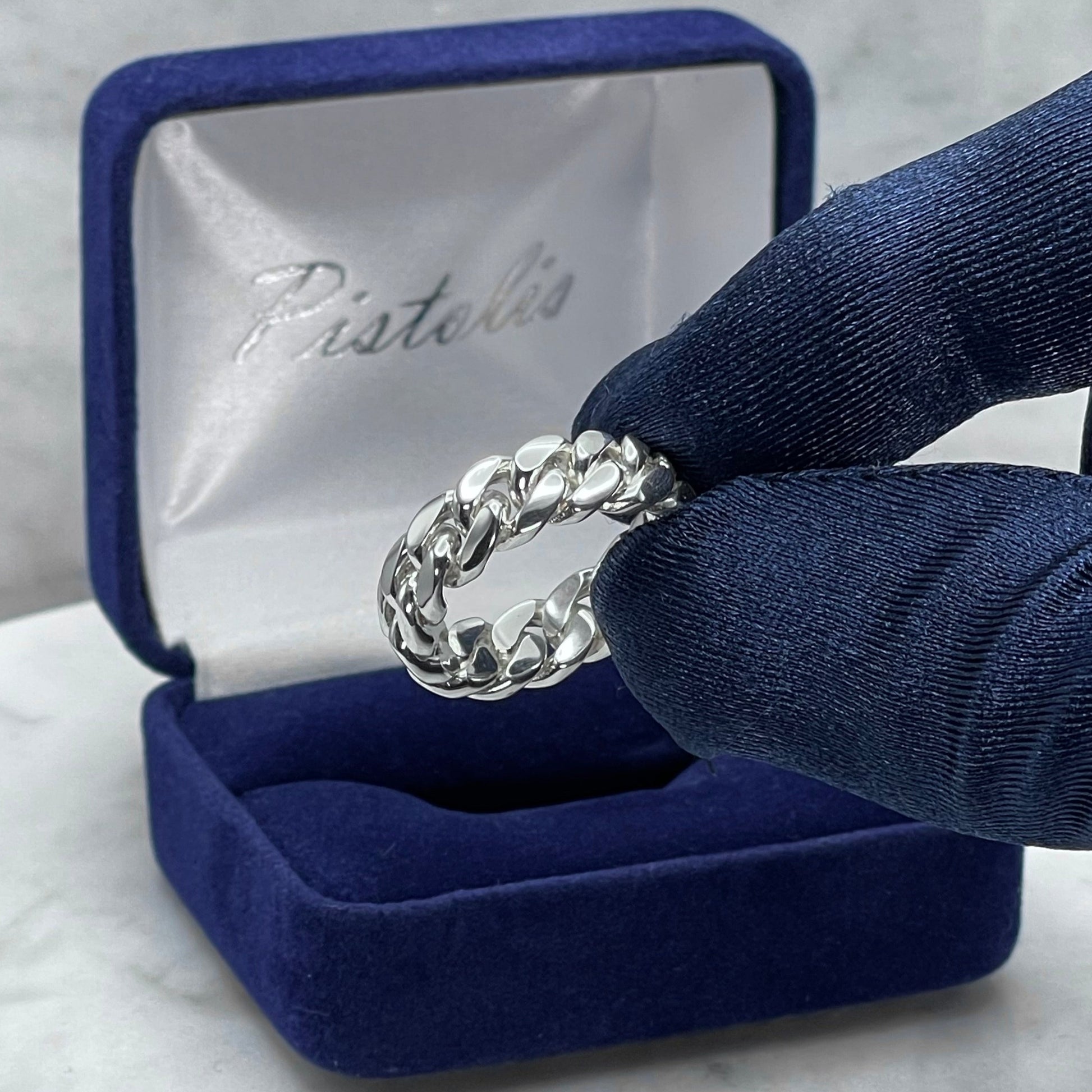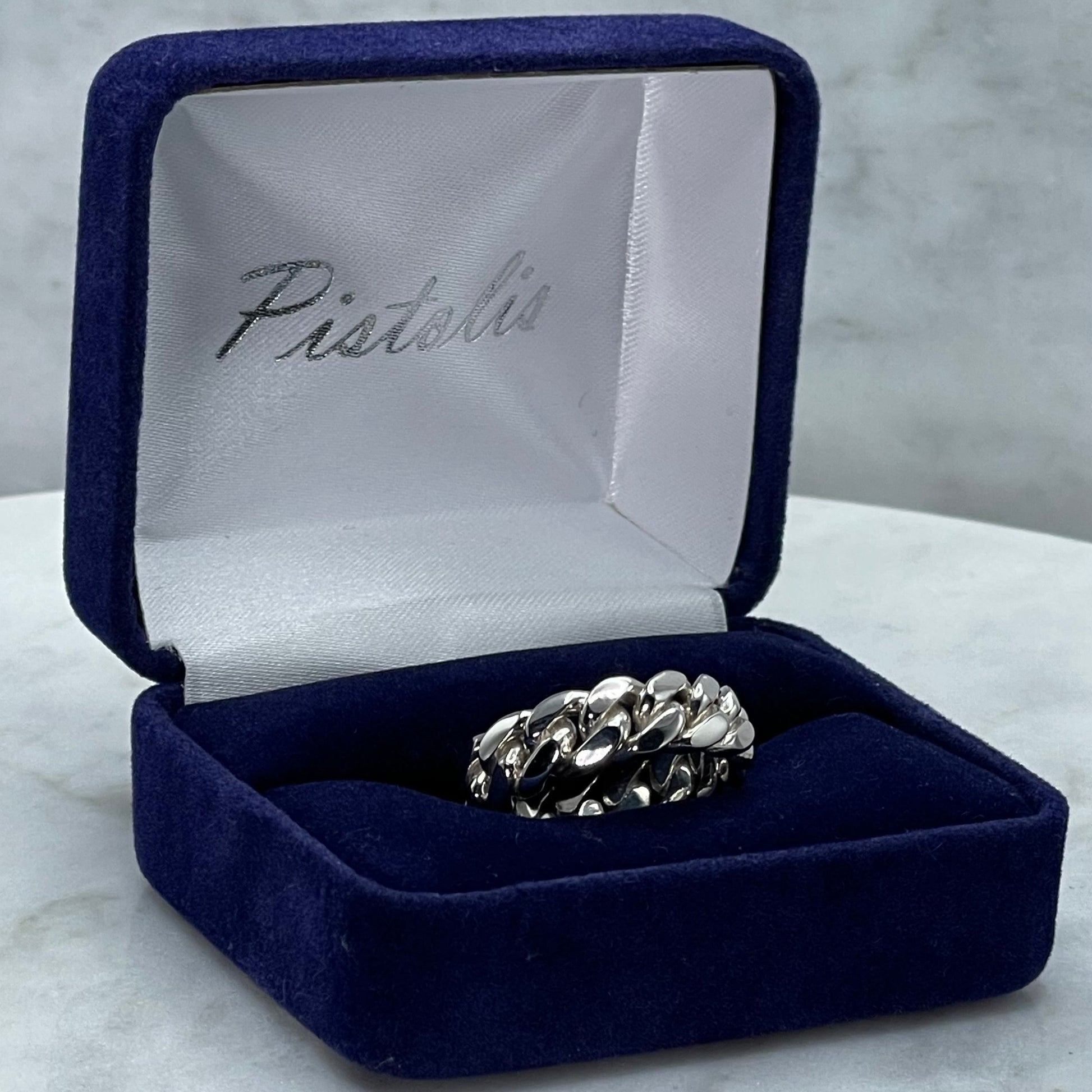 Each link fused, twisted and polished by hand, Pistolis Jewelry's Miami Cuban Link Ring is crafted in house with 940 Argentium® Silver to ensure superior luster and durability. Make a statement with this timeless Cuban Link design